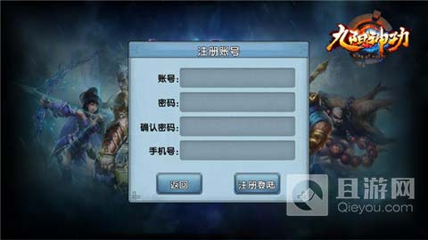 ●用户在注册界面输入账号,密码,确认密码,手机号后可直接注册账号并登录进游戏