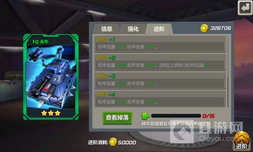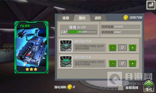 机甲强化需要消耗机甲或者机甲能量块,从而提升机甲级被,增加机甲的攻击力。