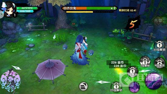 要注意白衣女鬼BOSS会施放两个技能,第一个技能,白衣女鬼BOSS会施放出一个伞,伞会向四周施放出飞镖状的物体。这个时候大家选择的职业还有一些技能没有解锁。因此,大家可以利用好游戏内的虚拟摇杆控制好角色的移动走位,躲过这些物体,避免对角色造成伤害。