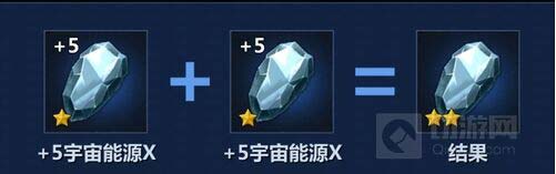这个就是就是合成升星,如果已经把宇宙能源X升级到+5品质,则可以组合两个想同类的宇宙能源X来获得一个更高级别的宇宙能源X。当然已经装备的可以是可以进行组合的,最高级别可以合成到6星