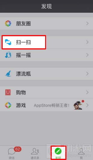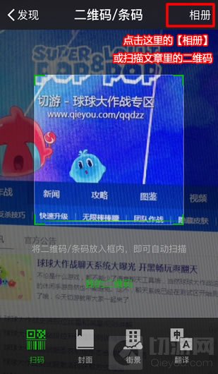 不会的朋友首先下载安装一个微信,然后点击【发现】->【扫一扫】,可以直接扫描上方的二维码,或者把游戏中保持的二维码选择进来识别。