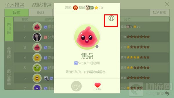 1、假如你在游戏结束之后,或者在排行榜中看到了一个你喜欢的大神,你就点击他的头像,之后就会弹出一个小窗口;