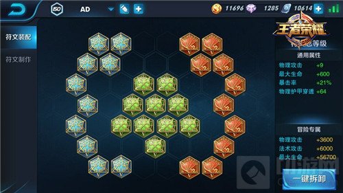 符文总等级为150级,增益分别为:9攻击力,600生命值,21%暴击率,64护甲穿透。