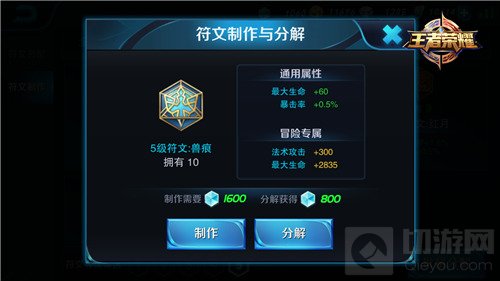 符文属性:60生命值,0.5%暴击率