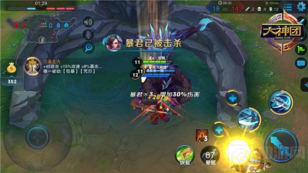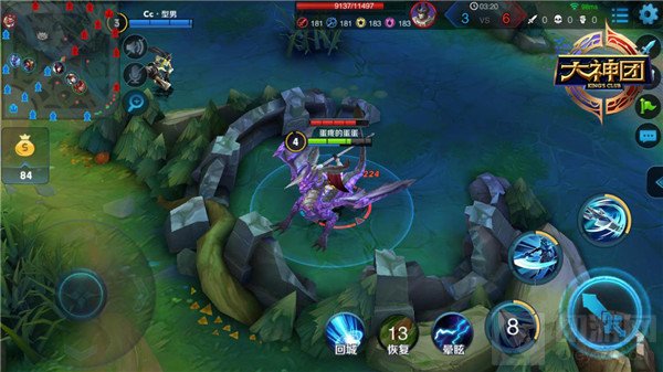 在3V3中,韩信的打野也是围绕BUFF怪展开,第一个优先击杀的野怪为上路增加移动速度和冷却缩短的BUFF野怪。拿到BUFF后,快速抢占击杀金钱野怪,击杀后获取更多金币,发育整个团队。野区最强的野怪“暴君”能为团队带来大量属性效果,且效果可以叠加,叠满三层后增加的属性也大幅提升。