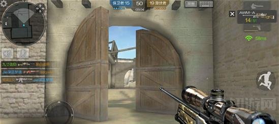 蹲点门口处是狙击手很简单**的方法,狙击枪开镜后可以很容易的击杀慌张出门无防备的潜伏者。有些狙击手喜欢在门口透射一番,所以我们在没看到敌人出现的时候可以透下木门来查看是否有敌人。如果狙击位置被发现的话我们可以透射面前的木门进行击杀。可攻可守的狙击点。