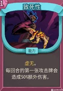 致死性就更没说头了,纯粹提升上限,其实能转起来的话致死性也不是很有必要,但它1是虚无牌很优秀不卡手,2道中拿一张提升爆发降低战损是很好用的,而且还是当回合生效,我觉得好用。