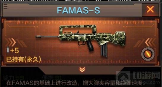 切游小编的介绍就先告一断落了,FAMAS-S能够让你成为CF手游中的下一个大神玩家!走上王者之路就全靠FAMAS-S了!