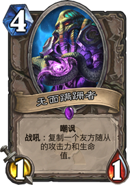 无面蹒跚者,这张卡只要4费,当有巨人、暮光龙或者上古站场时,其可以完美变身属性非常棒的随从,最重要的是我们所需要的嘲讽,它的缺点在于没有战场时只能卡手,不过这套牌中的上古只要两费,还是比较容易打出配合的。