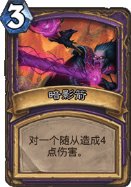 暗影箭,比较针对目前热门的蓝龙、萨满的魔像图腾以及法师的火妖,4点伤害在当前环境下无疑相当实用。