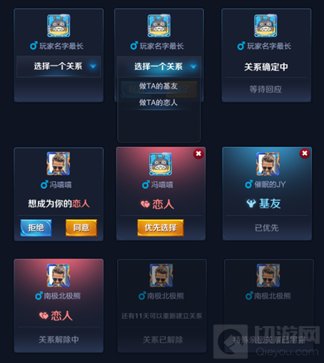 在王者荣耀体验服中,新增好友关系系统,当我们和好友亲密度满时,可以和好友建立不同的关系,目前为止,游戏中只开放“恋人”和“基友”关系。下面切游就给大家具体说说这个系统的作用。