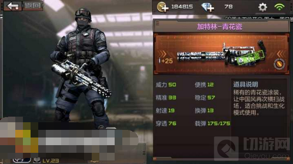 加特林本身就是拥有强大载弹量和射速的机枪,青花瓷系列的加特林更是赋予了它生化模式的伤害加成。加特林固有的强大射速可以给生化幽灵造成很强的击退,死亡中心本身易守的地方就不多,而加特林—青花瓷是能守住上层单通道的枪械之一。在这种情况下,加特林的命中率很容易接近100%,特殊的生化加成还能给敌人带来绝对的打击。