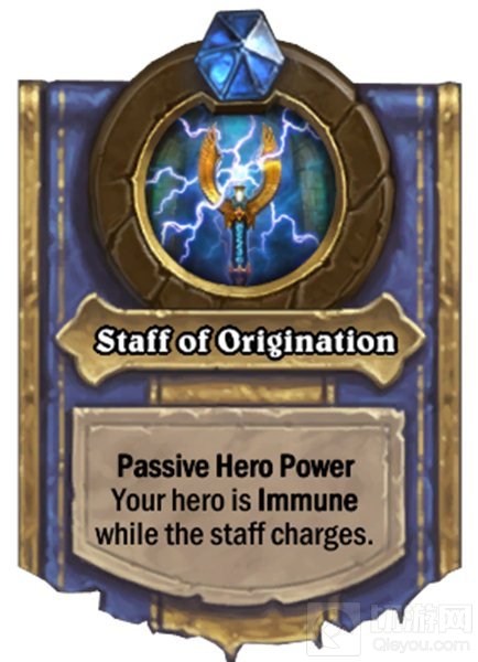 英雄难度:源生之杖-被动英雄能力。法杖充能时,英雄获得免疫效果(充能3回合,然后召唤随从且数据比普通模式高一倍,法杖过载并解除免疫一回合)。
