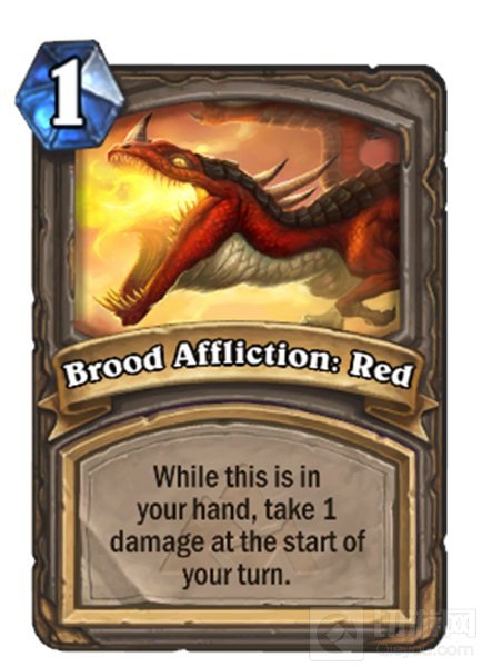 龙血之痛,红:当这张卡牌在你的手牌时,在你每一回合开始时对你造成1点伤害。英雄模式下,对你造成3点伤害。