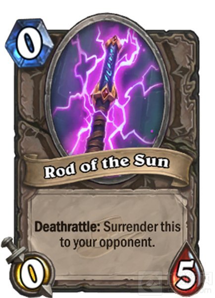 太阳杖:随从0费0攻5耐久 亡语:使你的对手装备这把武器。玩家需要先摧毁武器才能攻击费里斯。